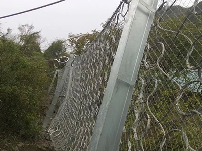環(huán)形網(wǎng)是有單根鋼絲盤結(jié)而成兩端頭間搭接長度不小于100mm。盤結(jié)而成的環(huán)用鋼質(zhì)或鋁合金緊固件至少在均勻分布的三處箍緊,且其中一處位于兩端頭的搭接處,除邊緣環(huán)孔外,每個環(huán)與其周邊的4個環(huán)相扣聯(lián)。單機(jī)具即可進(jìn)行系統(tǒng)的安裝、維修和部件更換。